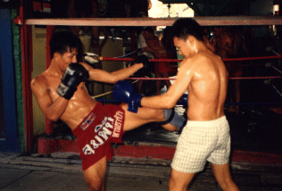 泰拳素有“刚拳铁腿”之称,尤其是其膝腿的攻击力更是令人生畏,往往是一脚击中对手便一脚定音,许多的拳手因此被打出血尿,而丧生在泰拳手脚下的也不乏其人。1980年在曼谷擂台上,日本拳王田中就是被泰拳王以一招左高侧踢踢断了手臂。 |